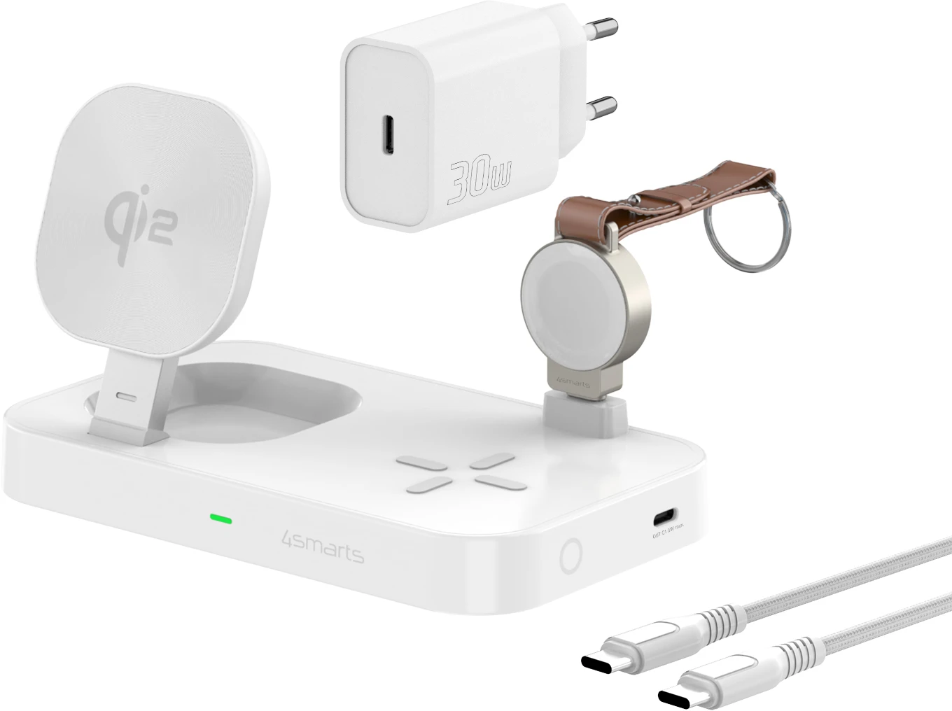 4Smarts Qi2 Ladestation Trident mit MFi Fast Charger für Apple Watch Weiß