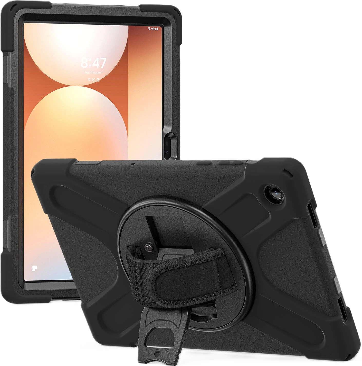 Dieses robuste Markencase ist der perfekte Begleiter in jeder Lebenslage: Egal ob auf der Baustelle, im Büro oder Freizeittouren. Der Multifunktionsgriff lässt dich dein Tablet ganz einfach im Portrait- oder Landscape-Modus aufstellen. So kannst du entspannt Videos anschauen, oder mit Familie und Freunden und freien Händen in die “Face-Time” gehen.